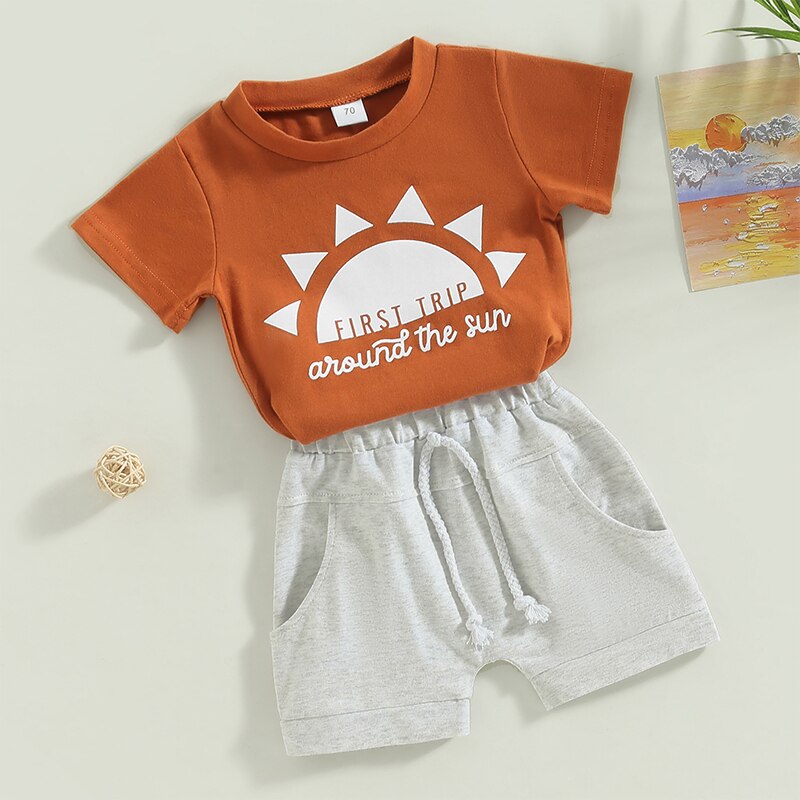 Nothing beats celebrating your baby's first trip around the sun! Show off their spirit with this fun set - featuring a tee shirt and comfy shorts - perfect for all their adventures! 'Round and 'round they go - hip hip hooray!