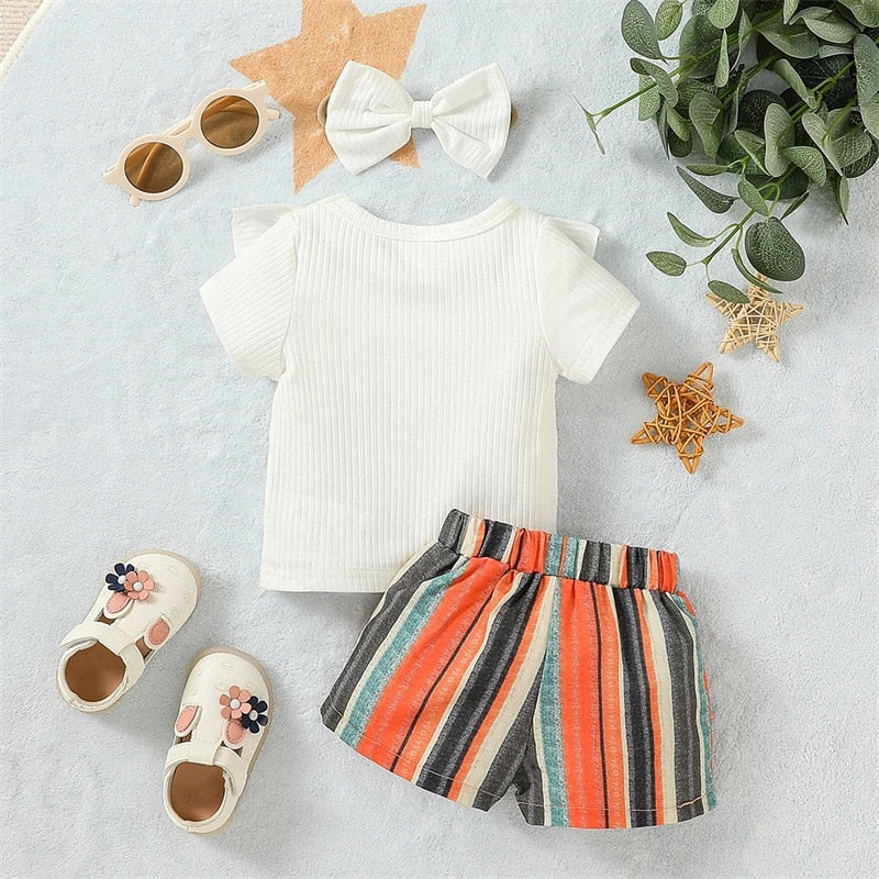 Your little girl will look oh-so-cute in this striped shorts and ruffle top set with an included headband. Perfect for a park day, a picnic, or any other fun summertime occasion! Put her in it and watch her steal the show in style! #AdorableInStripes